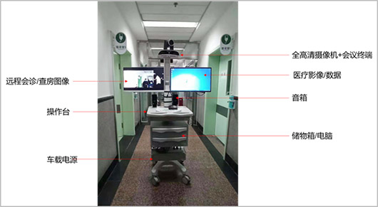 依據(jù)系統(tǒng)所配備的5G醫(yī)療會(huì)診/查房推車,可以實(shí)現(xiàn)視頻監(jiān)護(hù)、遠(yuǎn)程會(huì)診、視頻查房及遠(yuǎn)程探視等功能。