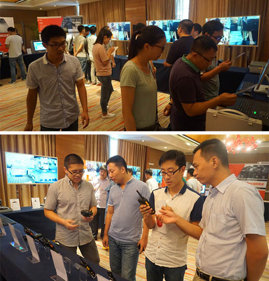 精彩一直在延續(xù)……接著,孫名晗先生向鄭州的各位客戶提前預(yù)告十月份捷視飛通將會(huì)參展2015年深圳安博會(huì)及2015年北京第五屆中國(guó)國(guó)際安全生產(chǎn)應(yīng)急技術(shù)與裝備展覽會(huì),屆時(shí)捷視飛通將會(huì)在2015年深圳安博會(huì)中發(fā)布全新的產(chǎn)品與系統(tǒng),歡迎大家光臨本公司展臺(tái)參觀體驗(yàn)。
