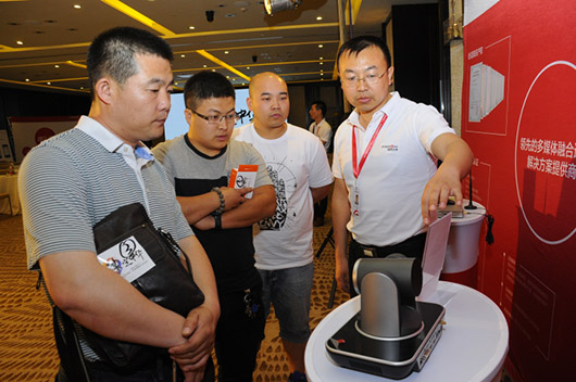 茶歇期間,參會來賓紛紛來到產(chǎn)品展示區(qū),就董文的精彩分享有針對性地向技術(shù)人員頻頻發(fā)問。技術(shù)人員認(rèn)真傾聽客戶的每個問題并耐心解答。大家期待已久的MCV5000多媒體功能錄播一體機(jī),以方便快捷、輕松操作、高效率管理等應(yīng)用,吸引眾多嘉賓駐足體驗,MCV5000的面市,定會為市場帶來巨大的轟動。